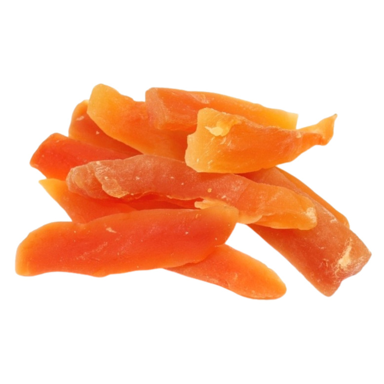 Taste the Tropical Sunset: Tropeco Naturals Dehydrated Papaya. Sourced from the sun-kissed groves of Sri Lanka, our papayas are carefully dehydrated to preserve their delicate sweetness and vibrant color. These soft, chewy slices are a delicious and healthy snack, perfect for a taste of paradise anytime. Naturally sweet, with no added sugars or artificial ingredients.